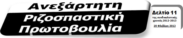 Συνάδελφοι-ισσες, πριν το χορό του Ζαλόγγου, που μας προτείνουν-μαζί με τις ατελείωτες 24ωρες που πάνε στον βρόντο, υπάρχει για όλους μας ένας και μόνος δρόμος. Αυτός της αντίστασης, της γενικευμένης σύγκρουσης και της ανατροπής. Κάνοντας πέρα τις συνδικαλιστικές ηγεσίες και τον κομματικό συνδικαλισμό, οργανώνοντας πραγματικούς αγώνες, απεργία διάρκειας, ξεσηκωμό όλου του κόσμου της εργασίας. Πριν μας τελειώσουν όλους, ας εγερθούμε !