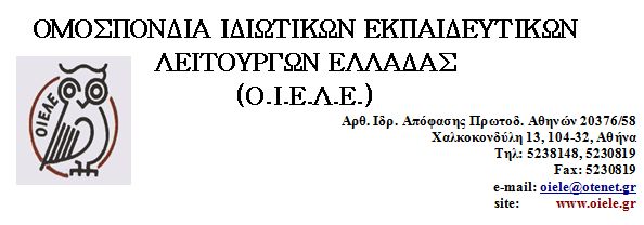 Επιστολή της ΟΙΕΛΕ στον Εισαγγελέα του Αρείου Πάγου σχετικά με την υπόθεση της έκδοσης παράνομων τίτλων σπουδών από ιδιωτικά ΤΕΕ