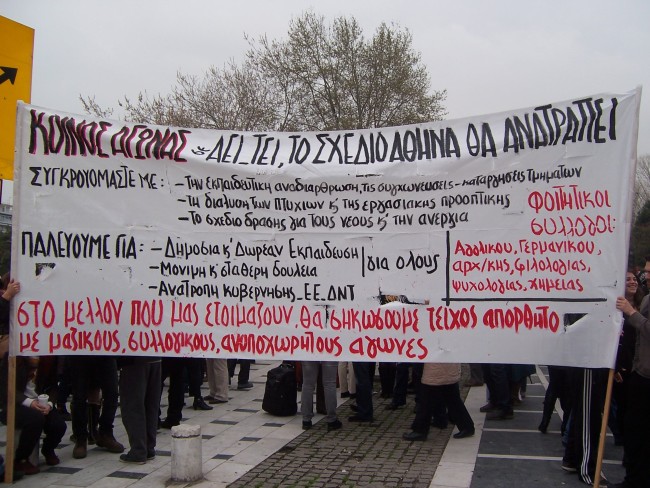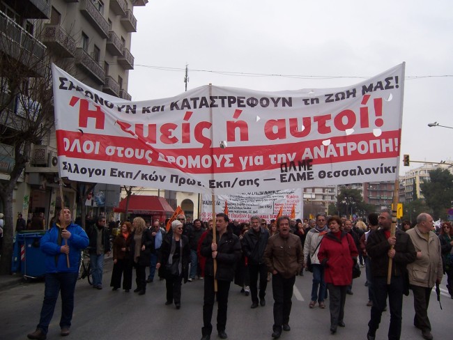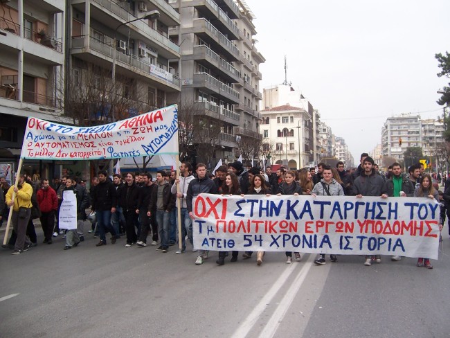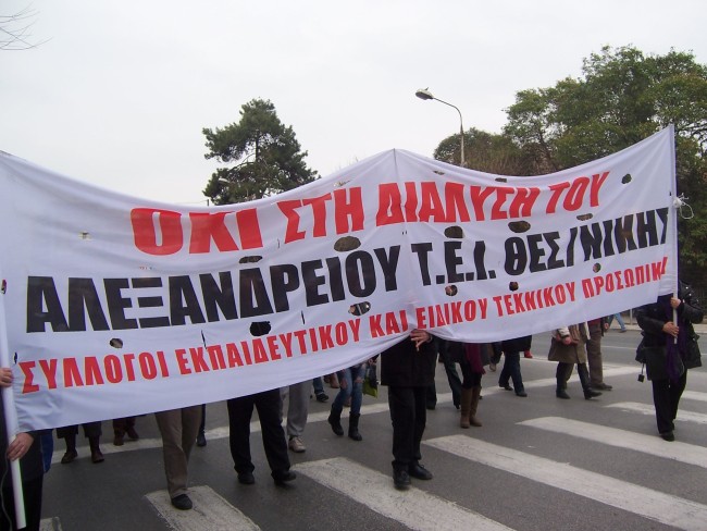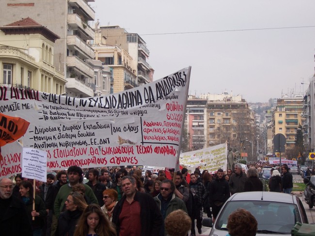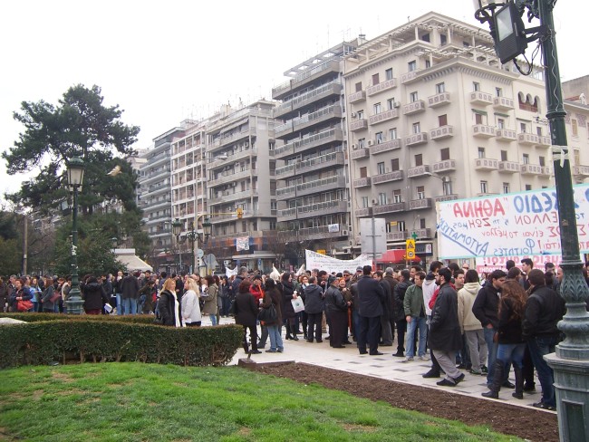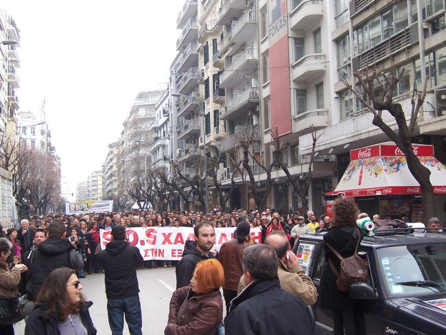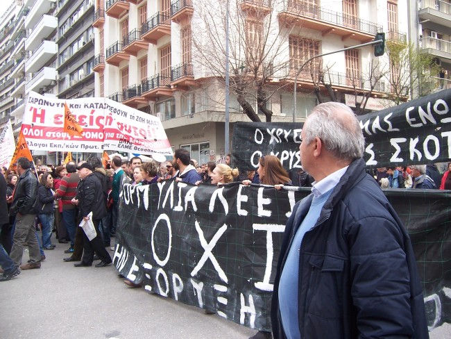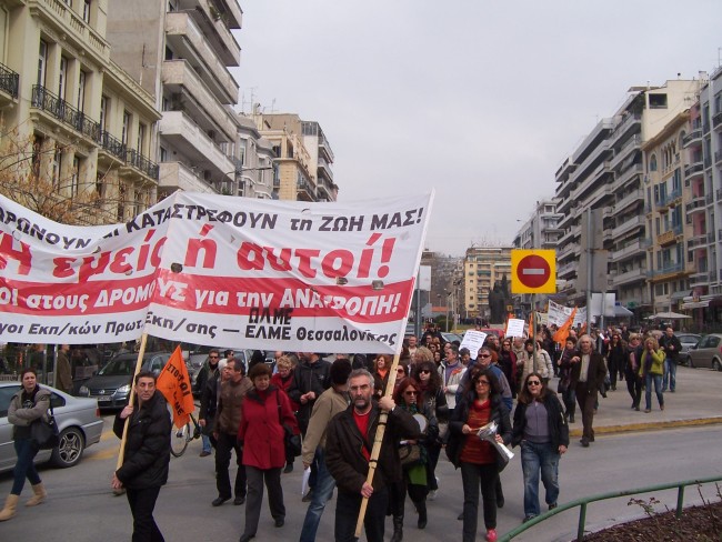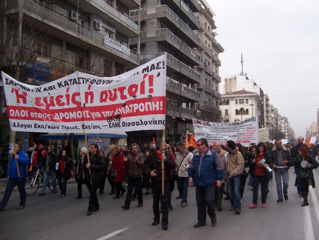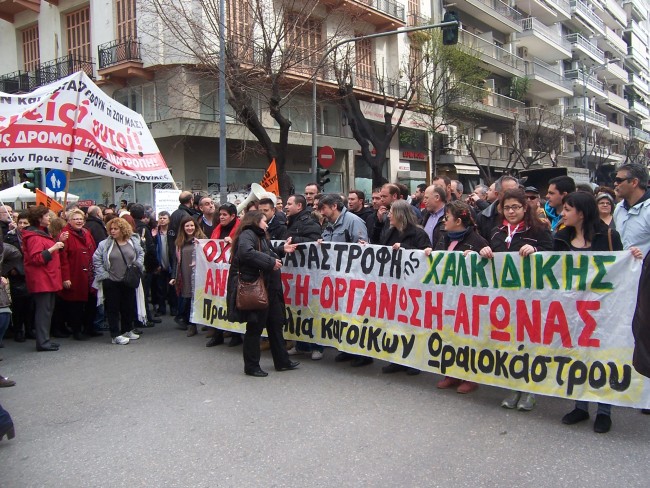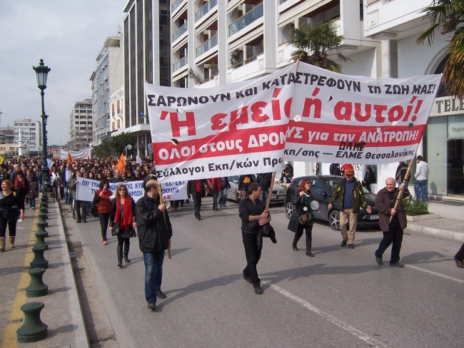 Μαζικό ήταν το πανεκπαιδευτικό συλλαλητήριο που οργανώθηκε στη Θεσσαλονίκη το Σάββατο 9/3/2013. Η πορεία των εκπαιδευτικών συναντήθηκε με την πορεία ενάντια στα μεταλλεία της Χαλκιδικής