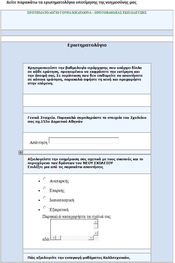 Θέμα : Σχετικά με τη «Συμπλήρωση ερωτηματολογίου στο πλαίσιο έρευνας πεδίου για το ΝΕΟ ΣΧΟΛΕΙΟ»