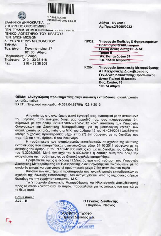 ΓΕΝΙΚΟ ΛΟΓΙΣΤΗΡΙΟ ΤΟΥ ΚΡΑΤΟΥΣ :Αναγνώριση προϋπηρεσίας στηνιδιωτική εκπαίδευση αναπληρωτών εκπαιδευτικών