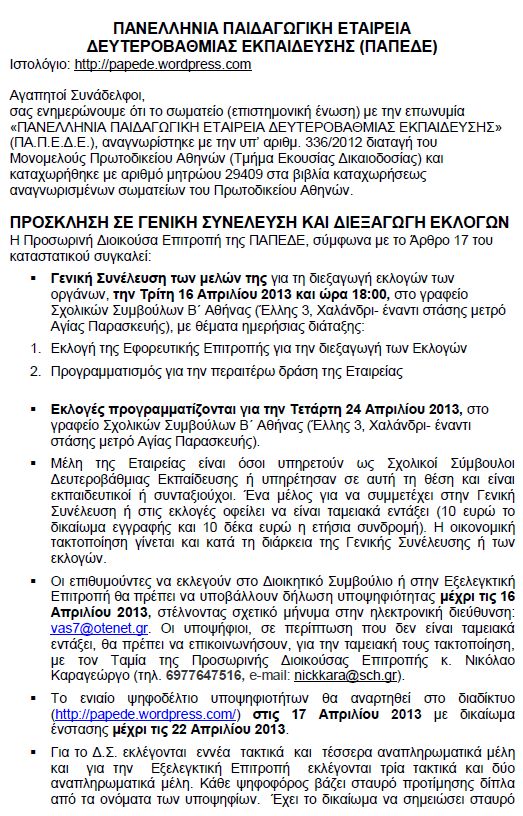 ΠΑΝΕΛΛΗΝΙΑ ΠΑΙΔΑΓΩΓΙΚΗ ΕΤΑΙΡΕΙΑ ΔΕΥΤΕΡΟΒΑΘΜΙΑΣ ΕΚΠΑΙΔΕΥΣΗΣ (ΠΑ.Π.Ε.Δ.Ε.)