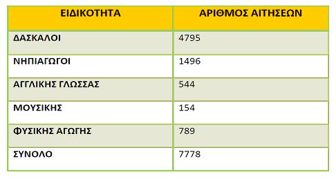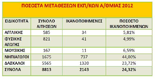 Σας υπενθυμίζω ότι οι αιτήσεις μετάθεσης των εκπαιδευτικών για το 2013 ανέρχονται σε 7.778. Αναλυτικά