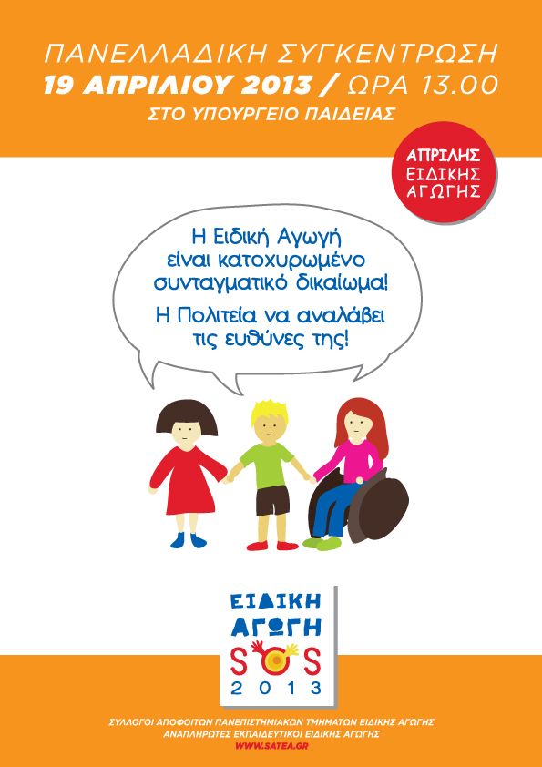 Πανελλαδική συγκέντρωση για την ειδική αγωγή στις 19 Απριλίου.