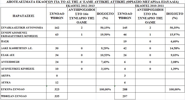 Α ΕΛΜΕ Δυτ. Αττικής: Αποτελέσματα εκλογών για το 16ο Συνέδριο της ΟΛΜΕ