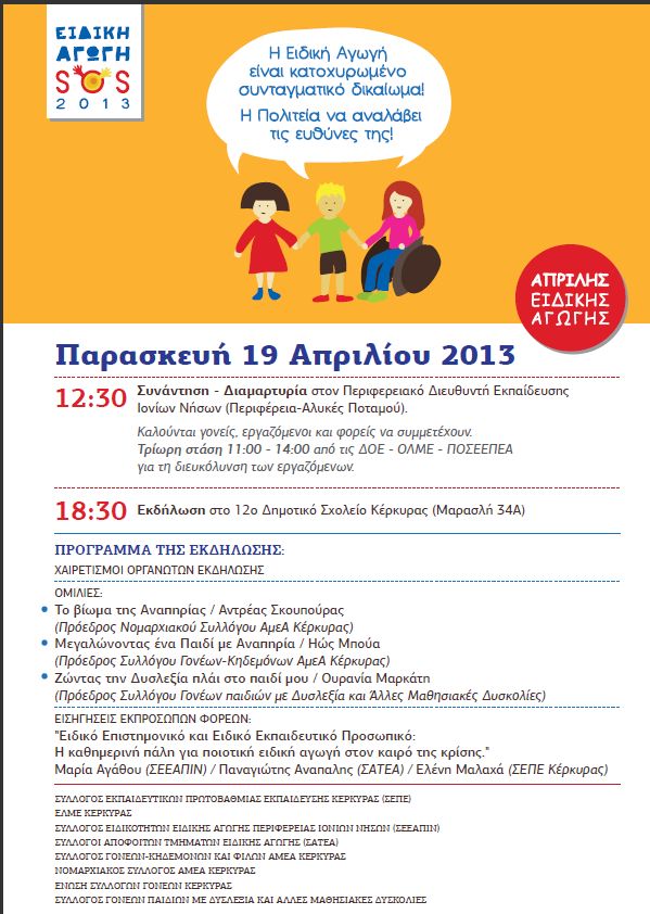 Δράσεις για την ειδική αγωγή στη Κέρκυρα για τις 19/4