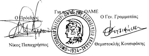 Το ΔΣ της ΟΛΜΕ καταγγέλλει για μια ακόμη φορά την προκλητική εμμονή Κυβέρνησης και Τρόικας, στην πολιτική της σκόπιμης συρρίκνωσης του Δημοσίου Τομέα, μέσω των δεκάδων χιλιάδων απολύσεων (γεγονός που επιβεβαιώθηκε σαφώς από τον αρμόδιο Υπουργό Διοικητικής Μεταρρύθμισης, στην πρόσφατη συνάντηση του με την ΕΕ της ΑΔΕΔΥ, ο οποίος έκανε λόγο για 14.000 απολύσεις πέραν των 25.000 που θα τεθούν σε διαθεσιμότητα- κινητικότητα εντός του 2013), καθώς και της μη επαρκούς αναπλήρωσης των δεκάδων χιλιάδων πραγματικών κενών που έχουν δημιουργηθεί τα τελευταία χρόνια εξαιτίας των αθρόων συνταξιοδοτήσεων, με αποτέλεσμα τη συνεχή υποβάθμιση της λειτουργίας των σχολείων, αλλά και όλων των Δημοσίων Υπηρεσιών, σε βάρος των μαθητών και όλου του λαού.