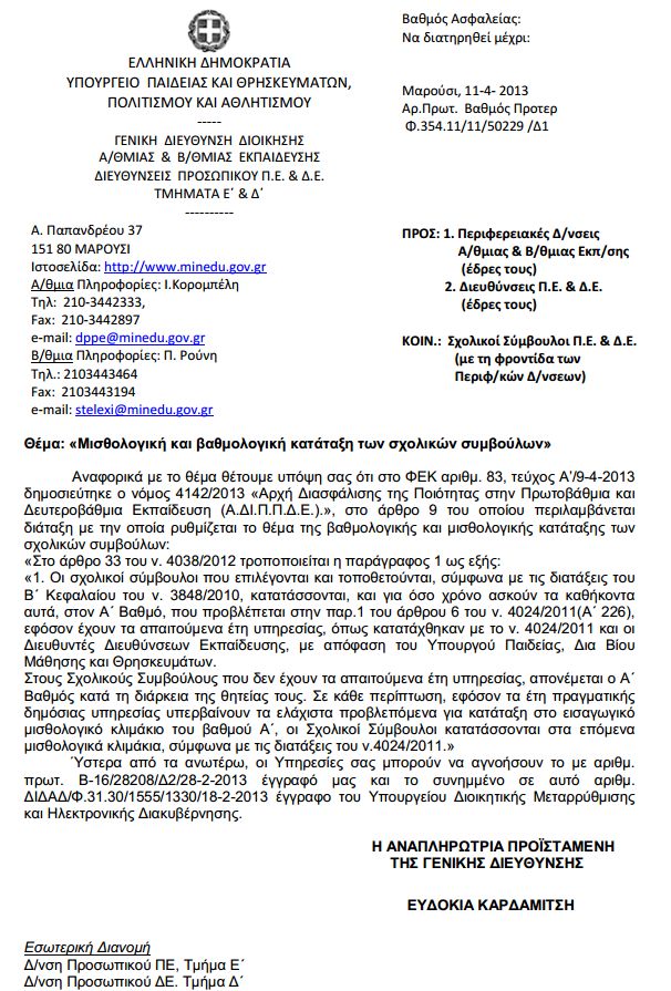 Μισθολογική και βαθμολογική κατάταξη των Σχολικών Συμβούλων