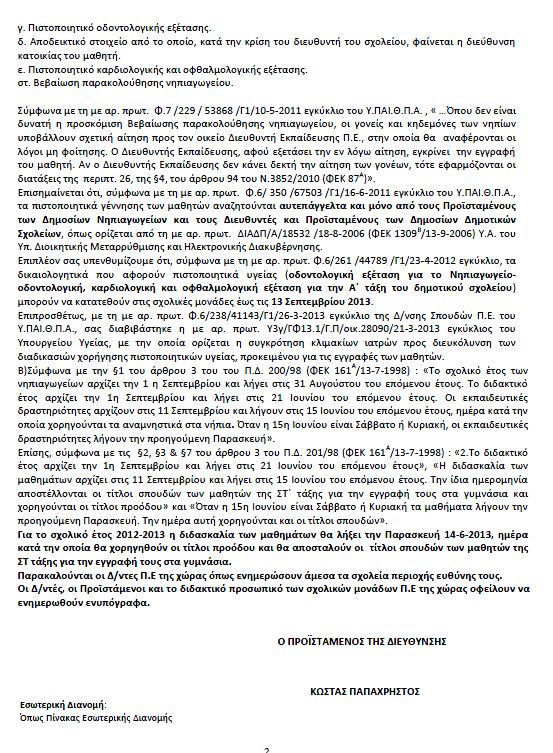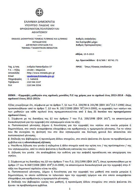 Εγγραφές μαθητών στις σχολικές μονάδες ΠΕ της χώρας για το σχολικό έτος 2013-2014 - Λήξη σχολικού έτους 2012-2013