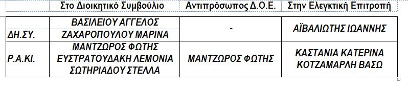 για το Δ.Σ. του Συλλόγου και για Αντιπρόσωπο στη Γ.Σ. της Δ.Ο.Ε.