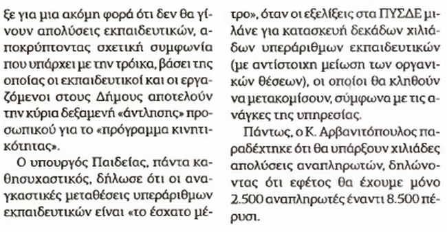 Χιλιάδες απολύσεις αναπληρωτών παραδέχεται ο υπουργός Παιδείας που υπόσχεται να εισηγηθεί άρση επιστράτευσης στα τέλη Ιουνίου