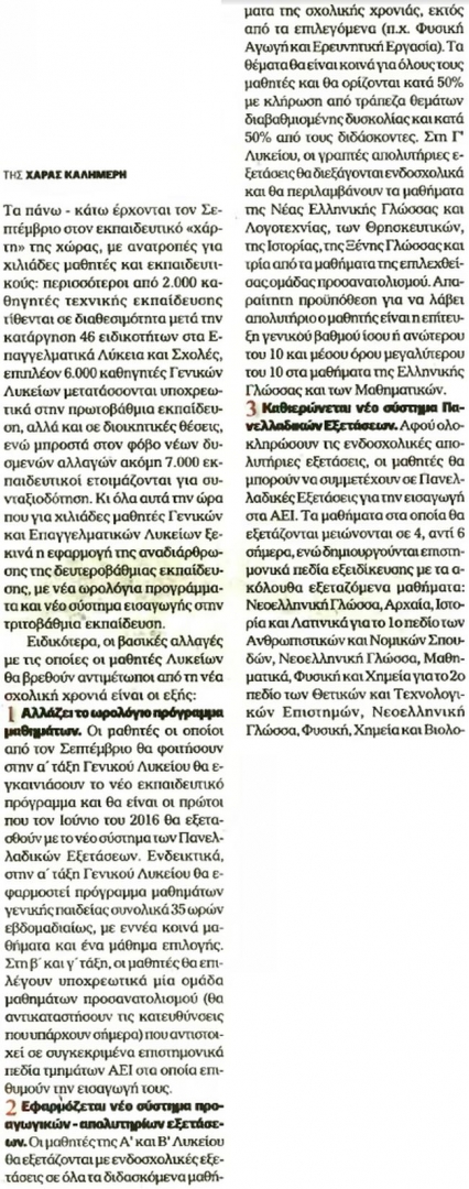 Νέο τοπίο στα σχολεία με διαφορετικά προγράμματα, εξετάσεις στο Λύκειο, διαφορετικό τρόπο υπολογισμού των βαθμών