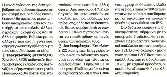 Μετατάξεις και κινητικότητα για τους καθηγητές