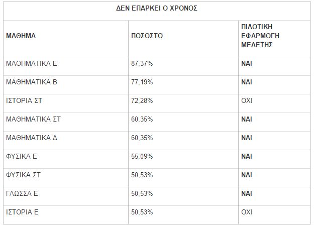 Η εφαρμογή της μελέτης στα μαθήματα Γλώσσα, Μαθηματικά και Φυσικά με τη διάθεση είτε μέρους της διδακτικής ώρας είτε ολόκληρης της διδακτικής ώρας ημερησίως και μέχρι 5 ώρες την εβδομάδα συνολικά έρχονταν σε αντίθεση και με τα ευρήματα έρευνας του ΙΕΠ σύμφωνα με τα οποία δεν επαρκεί ο χρόνος διδασκαλίας σε μαθήματα που ωστόσο θα «έχαναν» διδακτικό χρόνο για τη μελέτη - εμπέδωση.