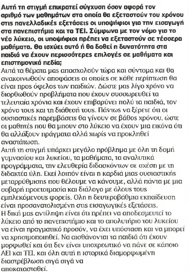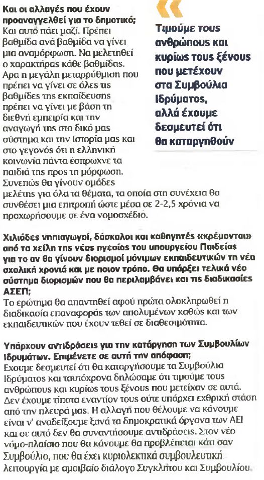 Σε συνέντευξή του στη σημερινό Κυριακάτικο ΕΘΝΟΣ ο Υπουργός Παιδείας δίνει απαντήσεις σε μια σειρά εκπαιδευτικά ζητήματα