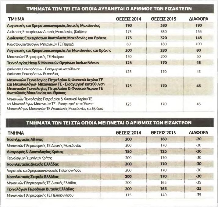 Από μια συγκριτική «ματιά» με τα περσινά στοιχεία φαίνεται ότι η μείωση των θέσεων καταγράφεται σε όλες τις περιζήτητες σχολές πανεπιστημίων, όπως οι πολυτεχνικές, ιατρικές, οικονομικές, φυσικές και χημείας.