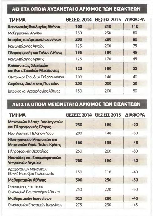 Για τους πίνακες με τον αριθμό εισακτέων ανά ίδρυμα πατήστε εδώ