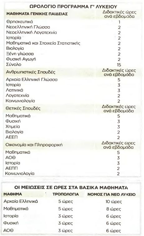 Σε κάποιες περιπτώσεις, όμως βασικά μαθήματα κατευθύνσεων χάνουν μεγάλο ποσοστό διδακτικών ωρών, όπως η περίπτωση των Αρχαίων Ελληνικών που από 10 διδακτικές ώρες πέφτει στις…5.
