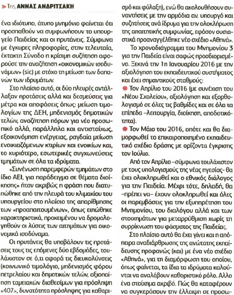 Αναδημοσίευση από την ΕΦΗΜΕΡΙΔΑ ΤΩΝ ΣΥΝΤΑΚΤΩΝ 13/10/2015