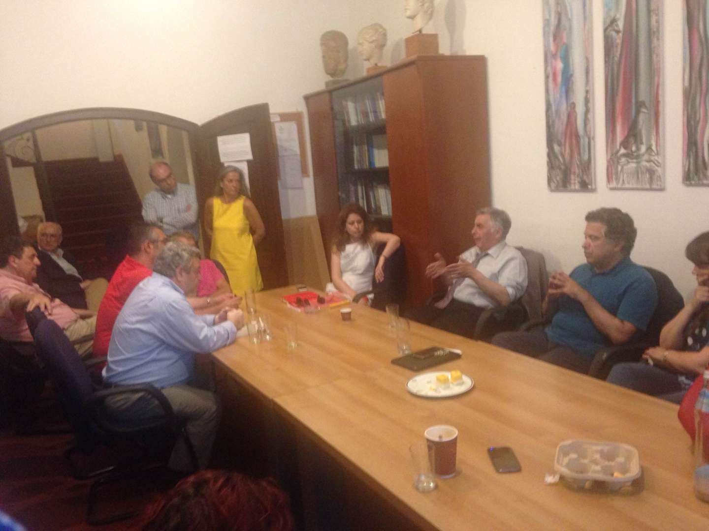 Στη συνάντηση, που έγινε στο γραφείο του Αντιδημάρχου, συμμετείχαν από ελληνικής πλευράς, η πρόεδρος των Κτηριακών Υποδομών, Ιωάννα Κοντούλη, του υπεύθυνου φορέα για την οικοδόμηση του κτηρίου μετά των νομικών συμβούλων, Καραγκούνη και Κωνσταντινίδη, και η Γενική Πρόξενος Μονάχου, Παναγιώτα Κωνσταντινοπούλου.