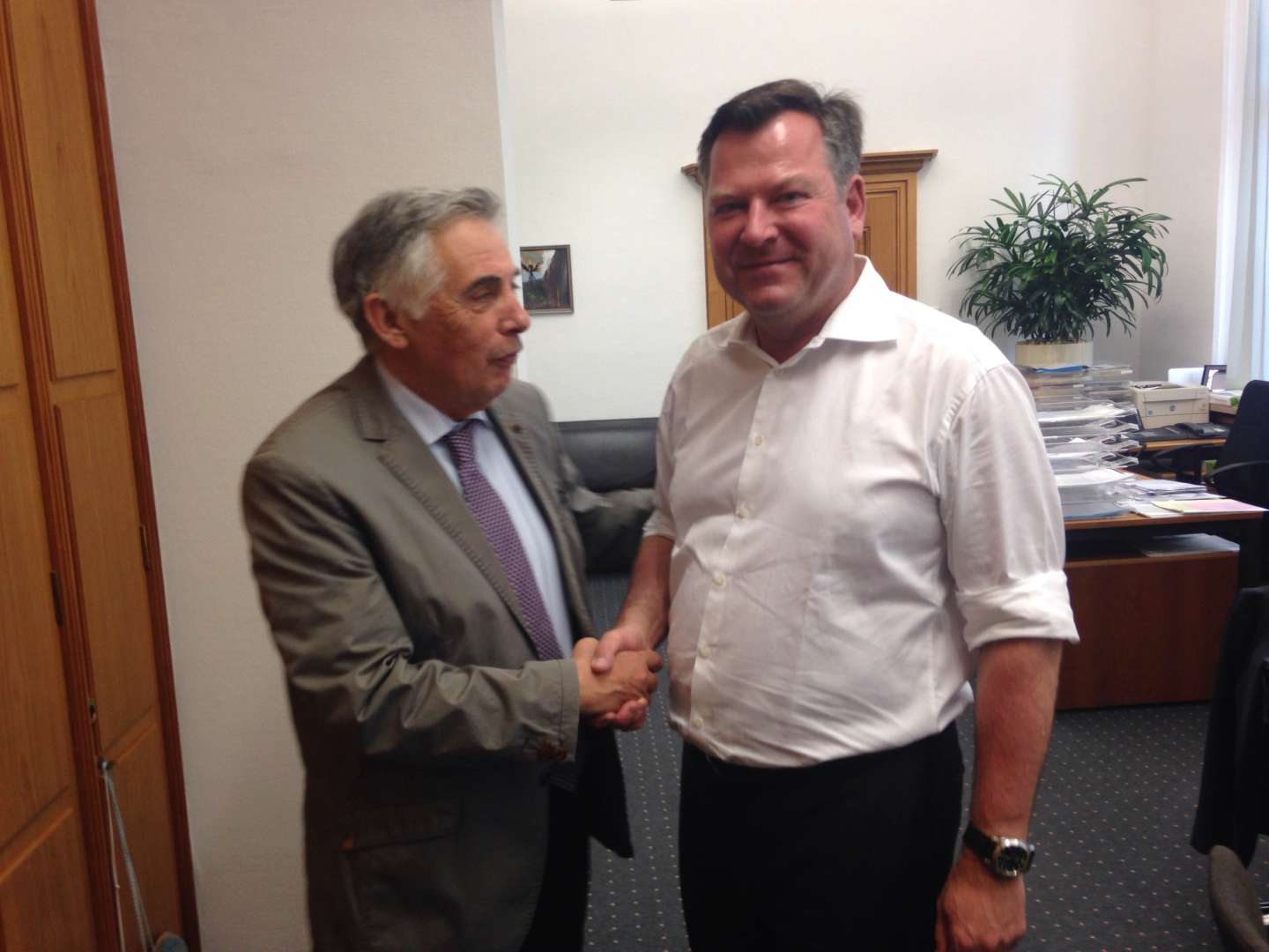 Σε συνέχεια των προσπαθειών του για την αντιμετώπιση των ζητημάτων εκπαίδευσης της ελληνικής ομογένειας, την 11η Ιουλίου στις 10.45 ο υφυπουργός Παιδείας, Έρευνας και Θρησκευμάτων, Θεοδόσης Πελεγρίνης, κατά την δεύτερη επίσκεψη του μέσα σε 4 μήνες στο Μόναχο, συναντήθηκε με τον Αντιδήμαρχο του Μονάχου, J. Schmid, υπεύθυνο του τομέα Οικονομικών, Τεχνικών Υπηρεσιών και Πολιτισμού, προκειμένου να συζητήσουν για το κτήριο του ελληνικού σχολείου στο Μόναχο.