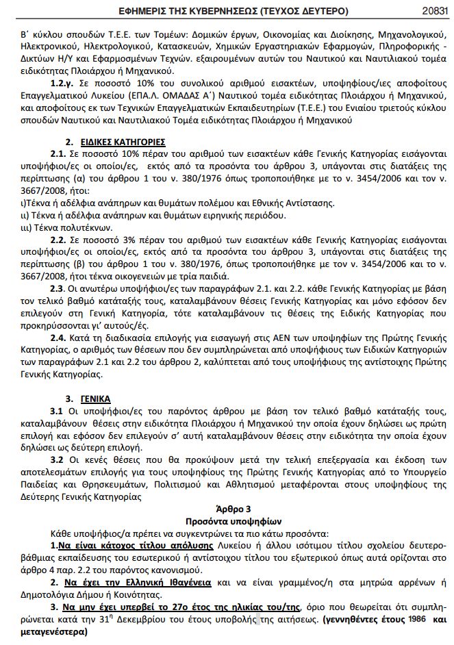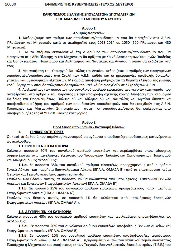 ΔΕΙΤΕ ΕΔΩ ΟΛΟΚΛΗΡΟ ΤΟ ΦΕΚ: O αριθμός των εισακτέων στις στις Ακαδημίες Εμπορικού Ναυτικού (Α.Ε.Ν.)