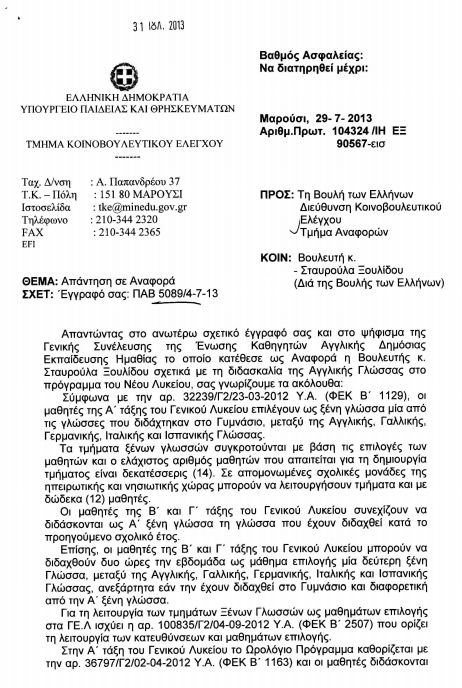 Σχετικά με τη διδασκαλία της Αγγλικής Γλώσσας στο Νέο Λύκειο