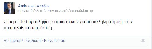 Ο υπουργός Παιδείας Ανδρέας Λοβέρδος στη σελίδα του στο facebook έκανε την εξής ανακοίνωση: