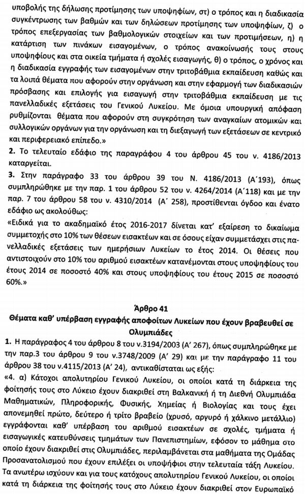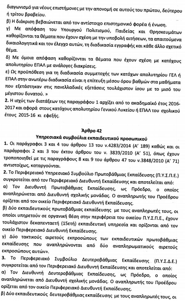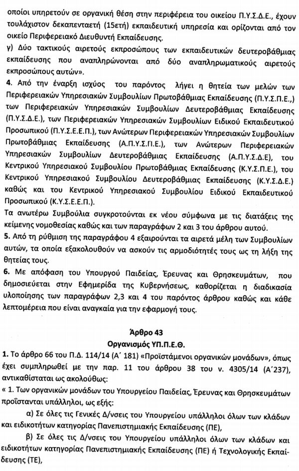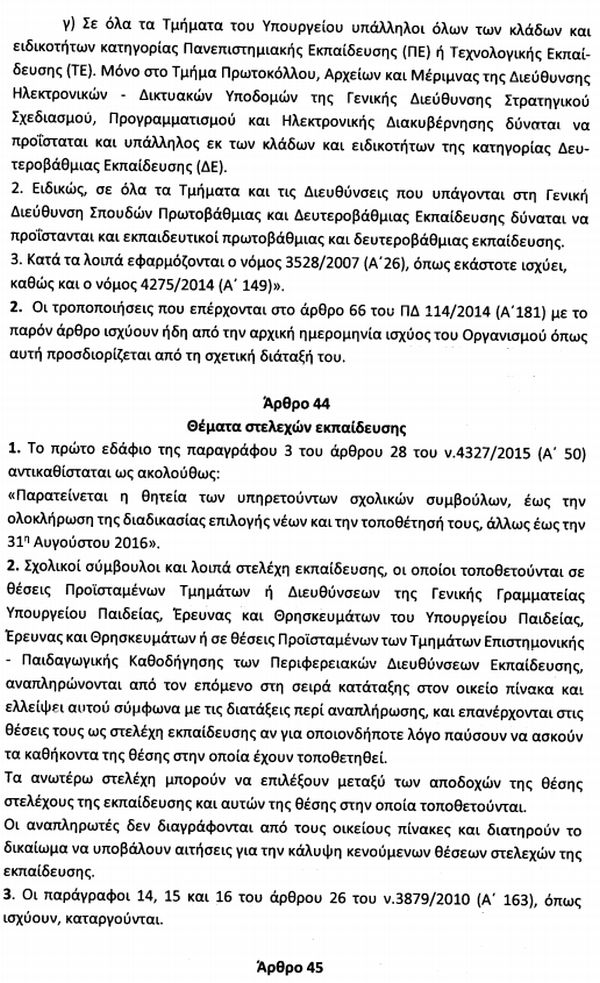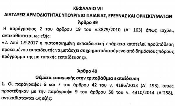 Δείτε τις διατάξεις αρμοδιότητας του υπουργείου Παιδείας στα άρθρα 39 έως 45 στο Σχέδιο Νόμου "Συνταξιοδοτικές ρυθμίσεις, ενσωμάτωση στο ελληνικό δίκαιο κ.λπ."