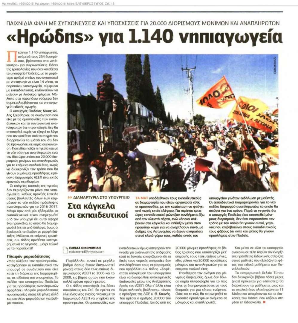 Δημοσίευμα του Ελεύθερου Τύπου
