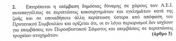 2.Επιτρέπεται η επέμβαση δημόσιας δύναμης σε χώρους των ΑΕΙ αυτεπαγγέλτως σε περιπτώσεις κακουργημάτων