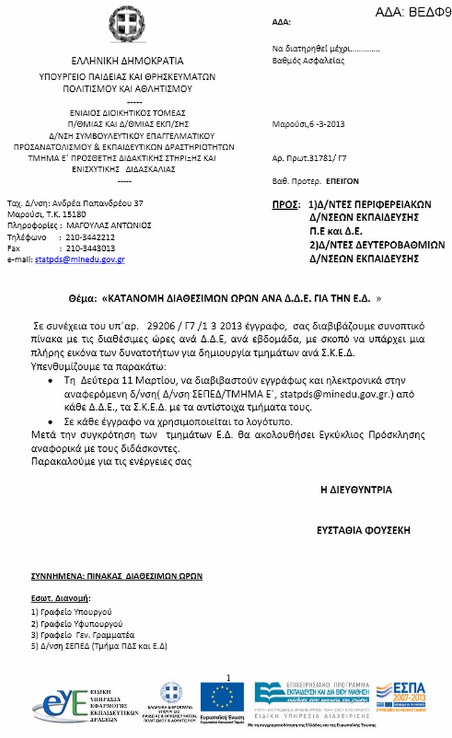 Μετά τη συγκρότηση των τμημάτων Ενισχυτικής Διδασκαλίας θα ακολουθήσει εγκύκλιος πρόσκλησης αναφορικά με τους διδάσκοντες.