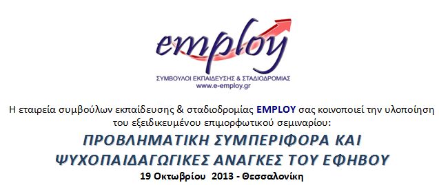 ή επισκεφθείτε τους δικτυακούς τόπους www.e-employ.gr | www.facebook.com/employ.page για το αναλυτικό πρόγραμμα και ολόκληρο το πρόγραμμα επιμορφώσεων που υλοποιεί η employ σε ολόκληρη την Ελλάδα