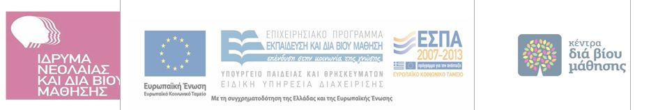 Το Έργο Κέντρα Διά Βίου Μάθησης – Προγράμματα Τοπικής Εμβέλειας» ΑΠ7 και Κέντρα Διά Βίου Μάθησης – Προγράμματα Τοπικής Εμβέλειας» ΑΠ8 εντάσσεται στο Επιχειρησιακό Πρόγραμμα Εκπαίδευση και Διά Βίου Μάθηση του Υπουργείου Παιδείας και Θρησκευμάτων και συγχρηματοδοτείται από την Ευρωπαϊκή Ένωση - Ευρωπαϊκό Κοινωνικό Ταμείο (Ε.Κ.Τ.) και το Ελληνικό Δημόσιο.
