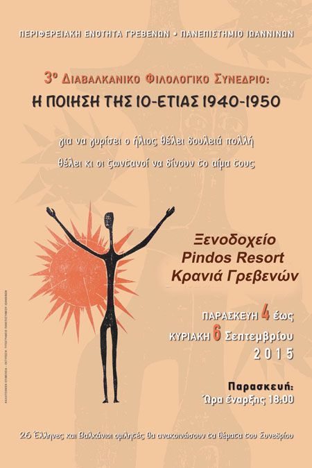 Προσκαλείστε να παρακολουθήσετε το 3ο Διαβαλκανικό Φιλολογικό Συνέδριο ΠΙΝΔΟΣ ΒΑΛΙΑ ΚΑΛΝΤΑ 2015 που πραγματοποιείται στις 4 με 6 Σεπτεμβρίου (Παρασκευή – Σάββατο – Κυριακή) στην Κρανιά Γρεβενών με θέμα: Η ποίηση της 10-ετίας 1940 – 1950».