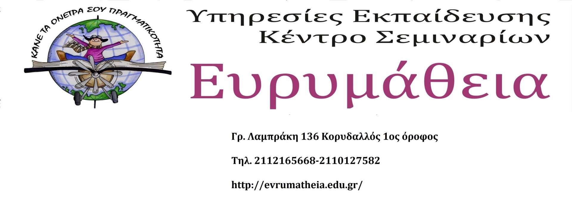 Η Ευρυμάθεια είναι ένα Κέντρο Σεμιναρίων που διοργανώνει επιμορφωτικά σεμινάρια. Το σύνθημά της είναι "Κάνε τα όνειρά σου πραγματικότητα". Αυτήν την περίοδο το Κέντρο Ευρυμάθεια διοργανώνει 10 Σεμινάρια που απευθύνονται σε εκπαιδευτικούς και γονείς