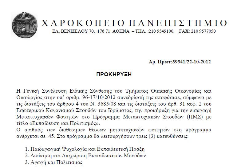 ΠΜΣ: Εκπαίδευση και πολιτισμός, από το Χαροκόπειο Πανεπιστήμιο Ω