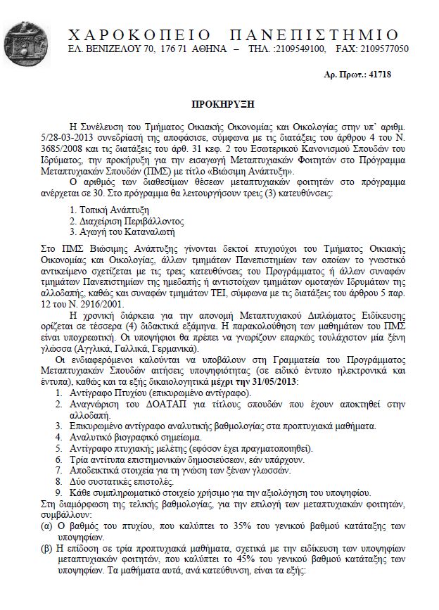 ΠΜΣ: Βιώσιμη ανάπτυξη στο Χαροκόπειο Πανεπιστήμιο