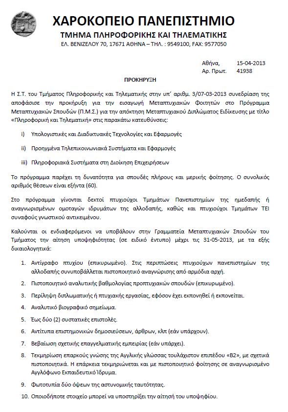 ΠΜΣ: Πληροφορική και Τηλεματική στο Χαροκόπειο Πανεπιστήμιο