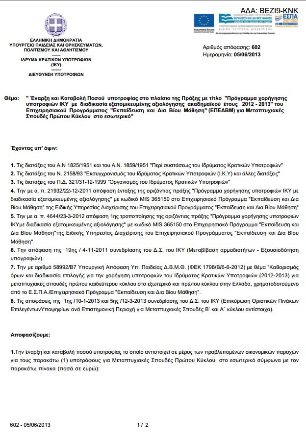 Εναρξη και καταβολής ποσού για υποτρόφους του ΙΚΥ
