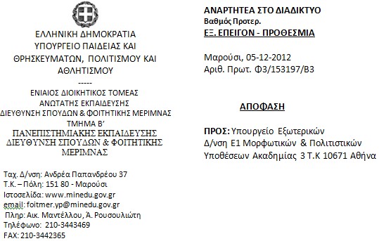 DIR. OF STUDIES AND STUDENTS WELFARE DEPARTMENT B’ 37 PAPANDREOU STR., MAROUSI 15180, ATHENS