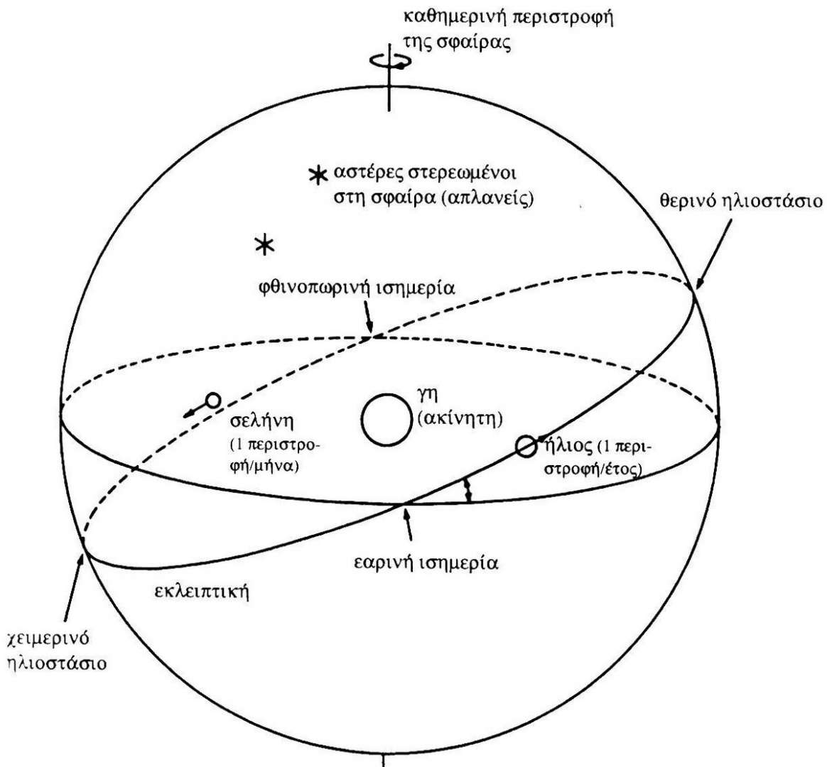 Όπως ξέρετε κάθε μέρα η Γη βρίσκεται σε διαφορετική θέση πάνω στην τροχιά της από αυτήν που βρισκόταν την προηγουμένη, και από κάθε νέα θέση εμείς πάνω στη Γη αντικρίζουμε τον Ήλιο από διαφορετική γωνία. Έτσι κάθε φορά που η Γη συμπληρώνει μία πλήρη περιφορά γύρω από τον Ήλιο, μας φαίνεται ότι ο Ήλιος ήταν αυτός που συμπλήρωσε έναν κύκλο γύρω από τη Γη, πάνω στην εκλειπτική. Η εκλειπτική δηλαδή δεν είναι τίποτε άλλο παρά η απεικόνιση, ή η προέκταση πάνω στην ουράνια σφαίρα, της γήινης τροχιάς γύρω από τον Ήλιο.
