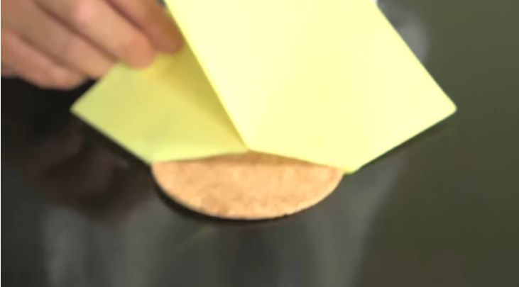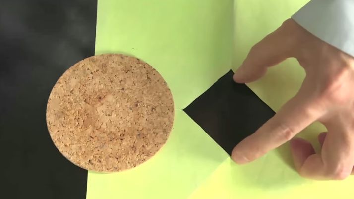 Έχοντας ένα δίσκο και ένα χαρτί, ο καθηγητής αρχικά φτιάχνει μια τρύπα σε σχήμα ρόμβου με διάμετρο περίπου μισή από την διάμετρο του δίσκου.