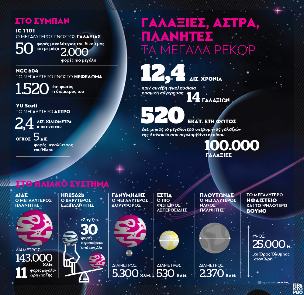 Το γράφημα αποτυπώνει στοιχεία για τα πιο εντυπωσιακά «φαινόμενα» στο σύμπαν / ΑΠΕ - ΜΠΕ / Δημοσιογραφική επιμέλεια: Δημ. Φραγκουλιώτης