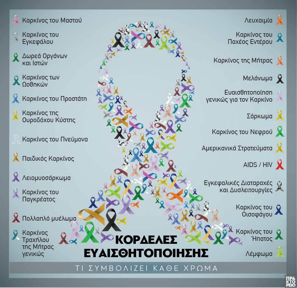 Το γράφημα παρουσιάζει τις πιο αναγνωρίσιμες κορδέλες που το χρώμα τους έχει συνδεθεί με τον αγώνα ενάντια σε κάποια ασθένεια / ΑΠΕ - ΜΠΕ / Δημοσιογραφική επιμέλεια: Δημ. Φραγκουλιώτης