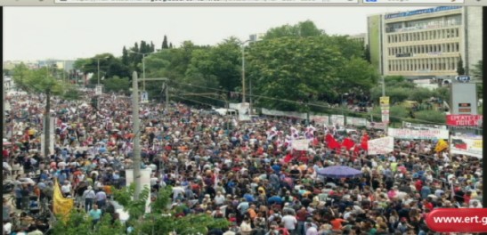 Πλήθος κόσμου συρρέει για να διαμαρτυρηθεί για το κλείσιμο της ΕΡΤ και την απόλυση τόσων χιλιάδων εργαζομένων.