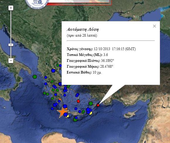 Όπως δείχνει το Γεωδυναμικό Ινστιτούτο στην ιστοσελίδα του που παρακολουθεί και δημοσιεύει την σεισμικότητα σε πραγματικό χρόνο τις τελευταίες 48 ώρες μετά από το μεγάλο σεισμό το μεσημέρι στην Κρήτη πριν απο λίγο έγινε και στην Ρόδο