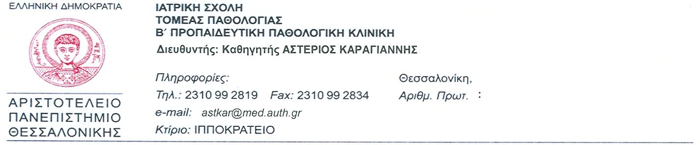Αναπληρωτής Καθηγητής Παθολογίας ΑΠΘ