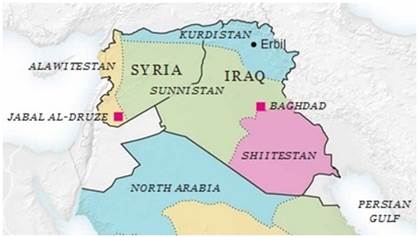 Οι προβλεπόμενες νέες συνοριακές γραμμές περνούν αποκλειστικά κατά μήκος των υπερασπιζόμενων θρησκευτικών και εθνοτικών οικισμών. Η Συρία θα μπορούσε συνεπώς να χωριστεί σε τρία μέρη. Στην παράκτια περιοχή προβλέπεται ένα τμήμα υπό τον έλεγχο των Αλεβιτών («Αλεβιστάν»). Στο βορρά θα μπορούσε να προκύψει η περιοχή «Κουρδιστάν», η οποία εκτείνεται πάνω από το βόρειο Ιράκ και φτάνει μέχρι τα σύνορα του Ιράν. Στην ανατολική Συρία βρίσκεται η «σουνιτική ενδοχώρα» («Σουνιστάν»), εκτείνεται αρκετά μέσα στο Ιράκ και φτάνει μέχρι τη Βαγδάτη. Το Ιράκ θα χωριζόταν επίσης σε τρία τμήματα: Το «Κουρδιστάν» στο βορρά, το «Σουνιστάν» που εκτείνεται και μέσα στη Συρία στα δυτικά και στο νότο. Ο νότος του «Σουνιστάν» θα συνορεύει με την Ιορδανία και τη Σαουδική Αραβία, ο βορράς με την Τουρκία. Αυτή η «σουνιτική σφήνα» αντιστοιχεί σήμερα στη περιοχή, στην οποία μόνο μέσα σ΄ ένα χρόνο εξαπλώθηκε το «Ισλαμικό Κράτος» στο Ιράκ και στο Λεβάντε. Τόσο η Τουρκία όσο και η Σαουδική Αραβία παίρνουν επίσημα ως αφορμή τις δραστηριότητες αυτής της ομάδας για να διασφαλίσουν τα σύνορά τους, να εξοπλιστούν και να ζητήσουν στρατιωτική συμπαράσταση (από το ΝΑΤΟ).