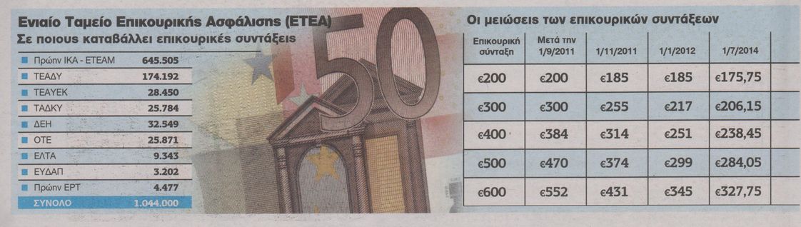 Η μείωση αφορά στους συνταξιούχους που παίρνουν τη σύνταξή τους μέσω του ΕΤΕΑ και ανήκουν δηλαδή στα Ταμεία: